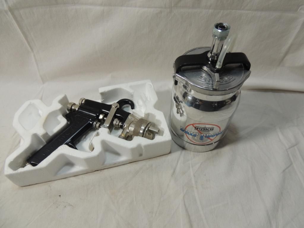BINKS SPRAY GUN AND SPRAY GUN CUP. AS SHOWN. SEE PHOTO FOR MORE DETAILS.
