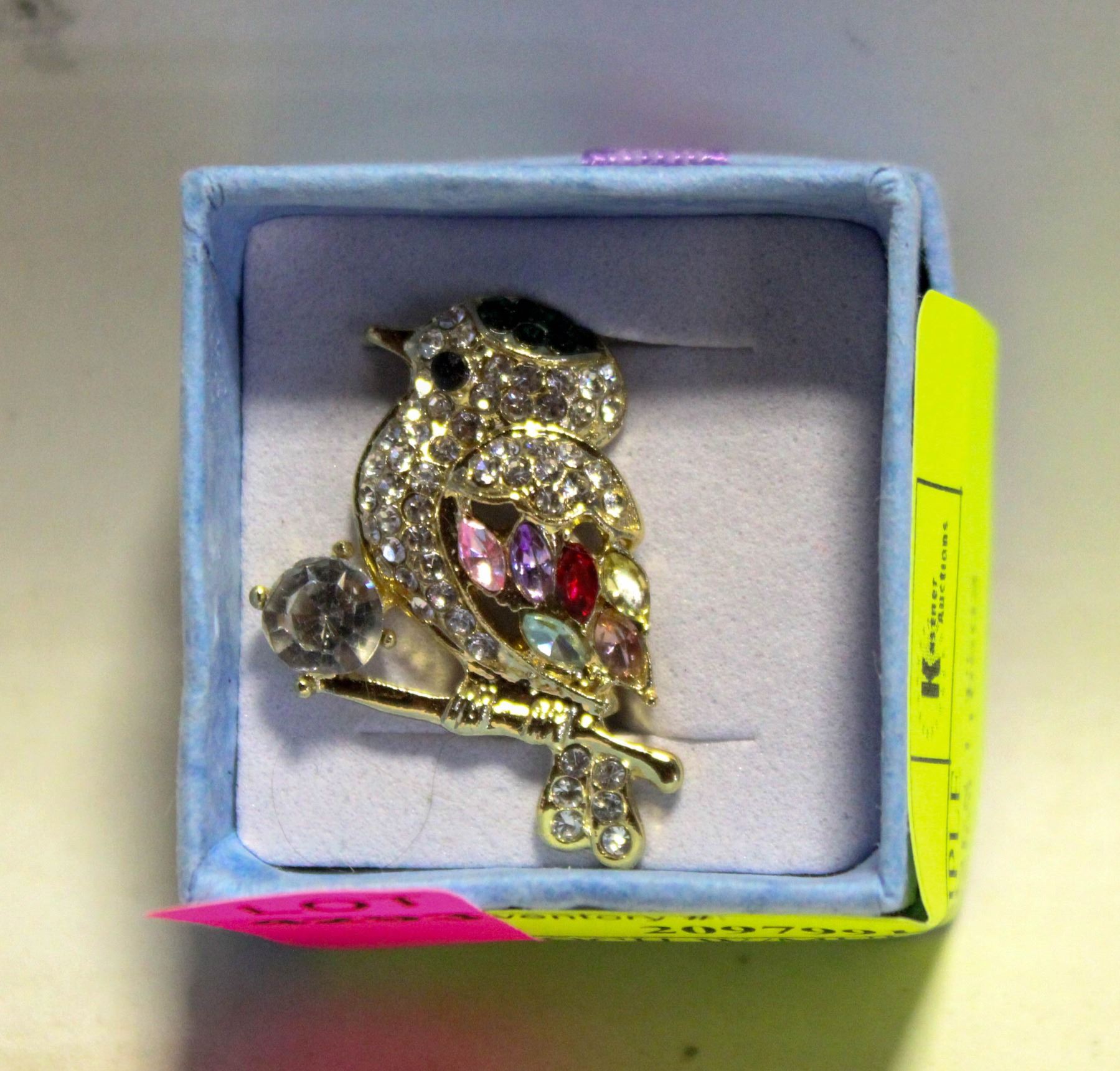BIRD BROOCH W/MULTIPLE COLOURFUL RHINESTONES 1.3"