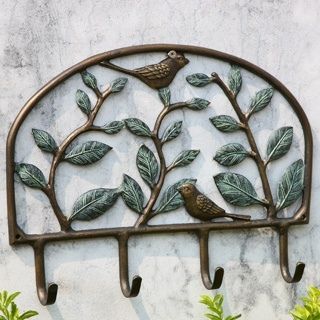 BIRD GARDEN TOOL RACK - 13.5"H 17.5"W 2.5"D - ALUMINUM - HOLDS LIGHTWEIGHT TOOLS OR KEYS - MOUNTS TO ANY WALL (SCREWS INCLUDED)