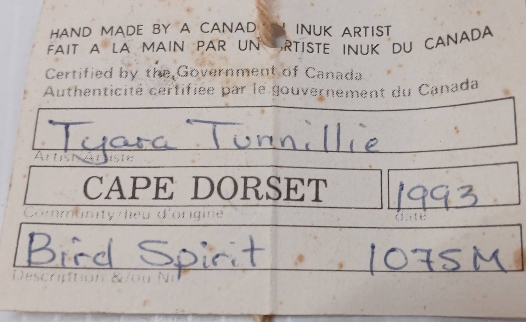 NOTE: 6 X 8 X 9IN - CIRCA 1993 - MADE IN CAPE DORSET