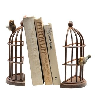 BIRDCAGE BOOKENDS - 9"H 5"W 3"D - IRON