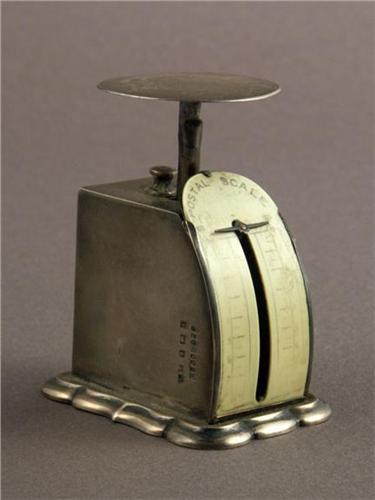 STERLING: A small English Birmingham Sterling Silver postage scale hallmarked ''L & S'', Levi & Salamon, measures 2 1/2''H x 2''W, circa 1908-1909, with Birmingham assayer's marks.