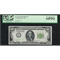 1934 $100 Federal Reserve Note Light Green Seal PCGS Very Choice New 64PPQ
