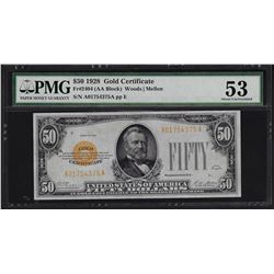 1928 $50 Gold Certificate Note Fr. 2404 PMG About Uncirculated 53