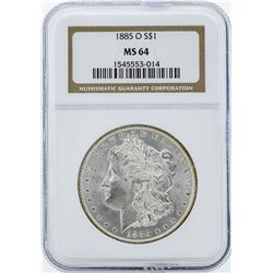 One 1885-O $1 Morgan Silver Dollar Coin NGC MS64. NGC Certified.