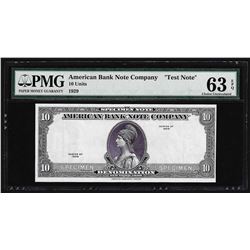One 1929 American Bank Note Company Test Note 10 Units PMG 63EPQ. PMG Certified.