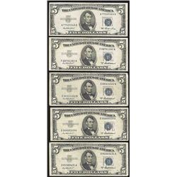 Lot of (5) 1953 $5 Silver Certificate Notes