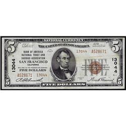 One 1929 $5 Bank of America San Francisco CH# 13044 National Currency Note.
