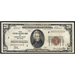1929 $20 Federal Reserve Bank Note Kansas City