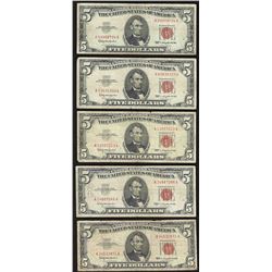 Lot of (5) 1963 $5 Legal Tender Notes