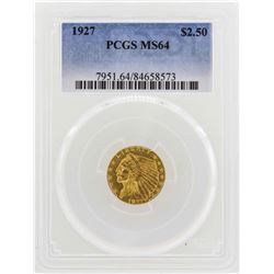 One 1927 $2 1/2 Indian Head Quarter Eagle Gold Coin PCGS MS64. PCGS Graded.