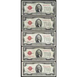 Lot of (5) 1928 $2 Legal Tender Notes