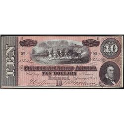 One 1864 $10 Confederate States of America Note.