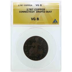 One 1787 Connecticut Draped Bust Colonial Copper Coin ANACS VG8. ANACS Certified.