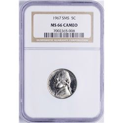 One 1967 SMS Jefferson Nickel Coin NGC MS66 Cameo. NGC Certified.