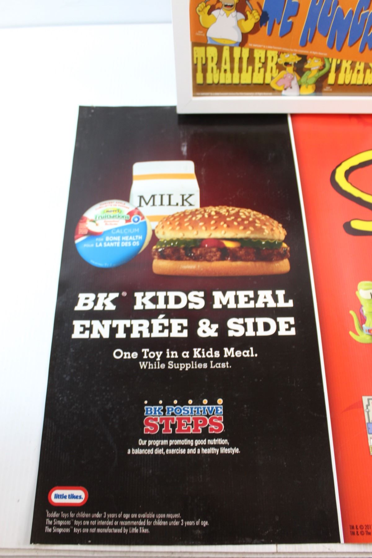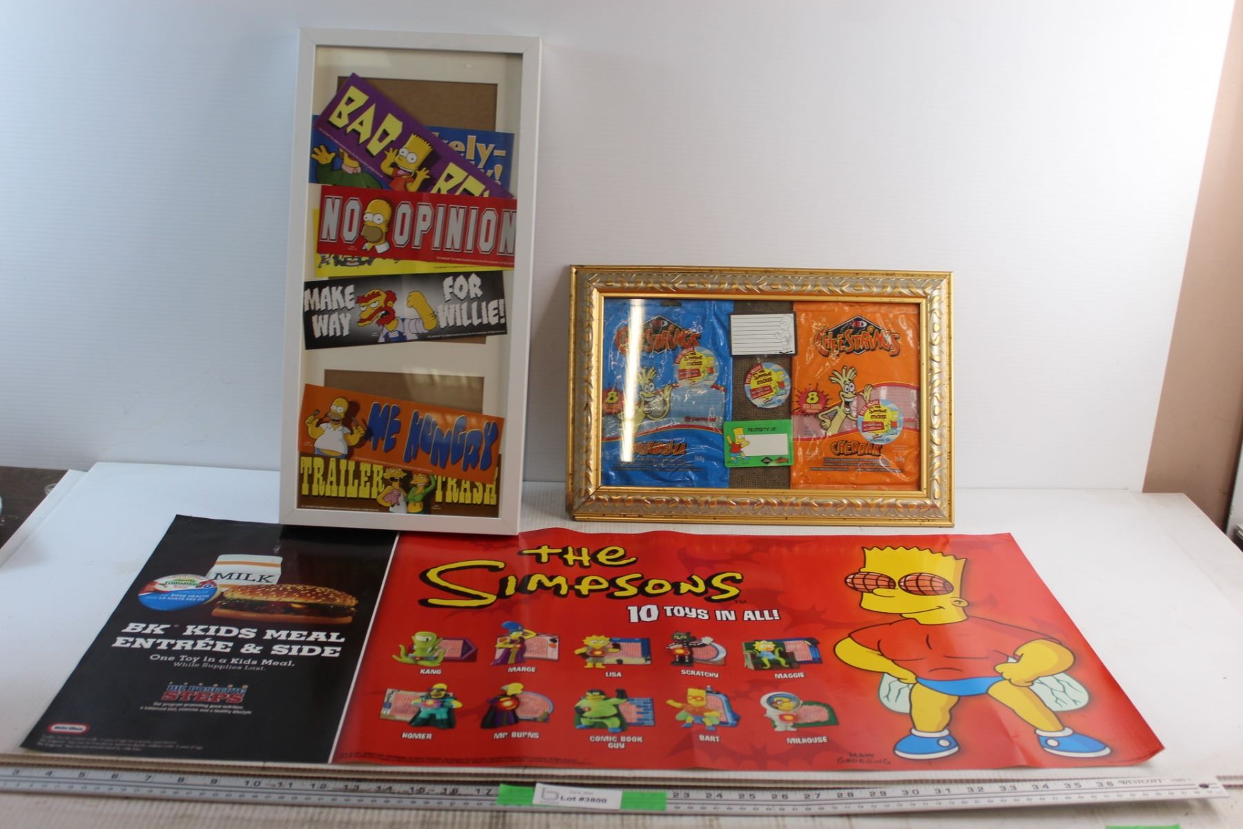 BK x The Simpsons Ad Banner, Framed Vintage Cheese Strings Packages and the Simpsons Bumper Stickers