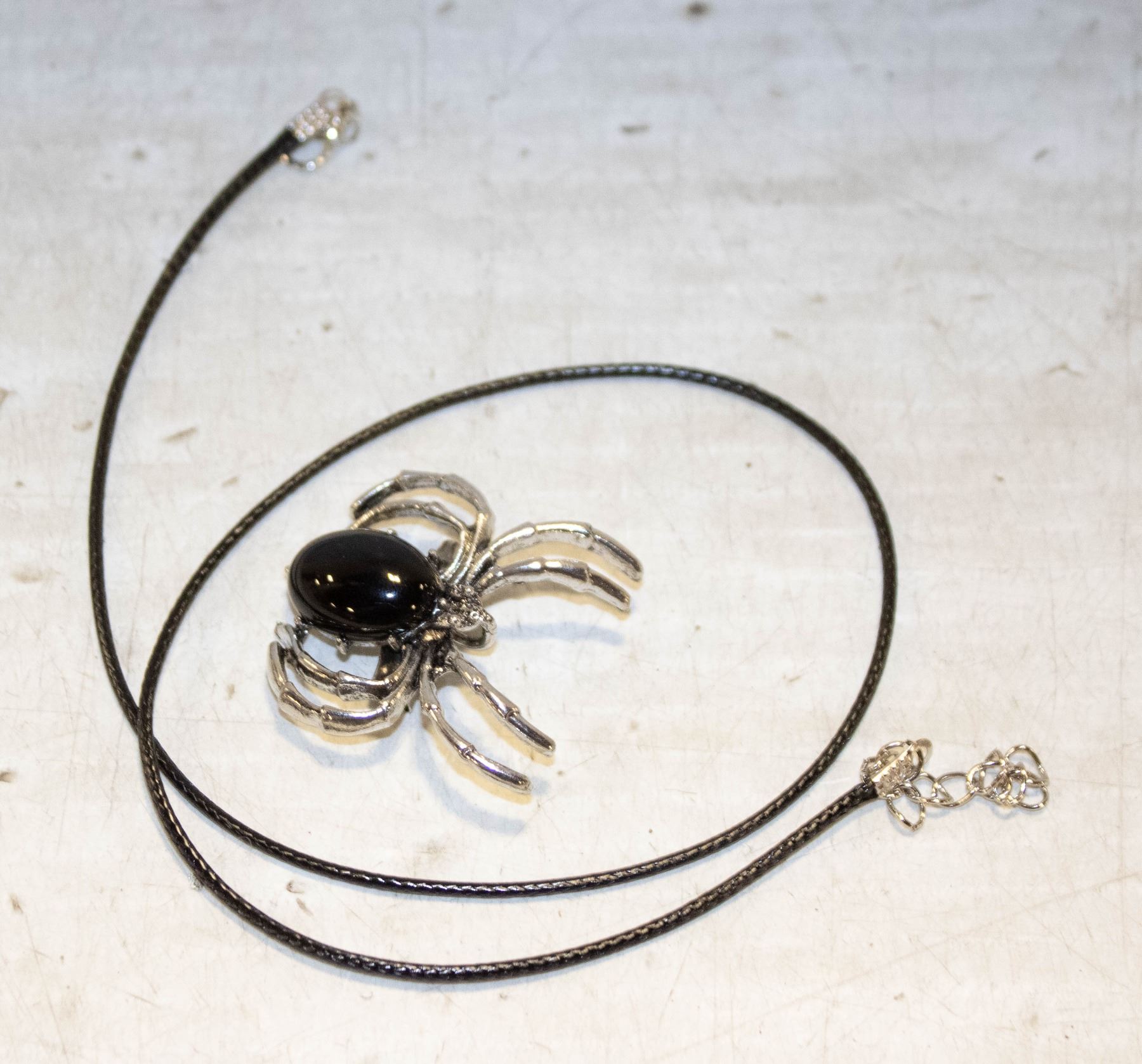 BLACK AGATE SPIDER BROOCH/NECKLACE