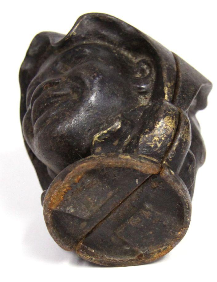 C. 1901-1919. 4 inch A.C. Williams cast iron two sided face still bank. Overall good condition with original patina and some gold paint still visible.