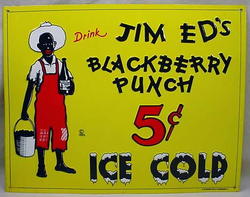 BLACK AMERICANA BLACKBERRY PUNCH TIN ADVERTISING SIGN - NEWER - Approx. 11.5" by 9"
