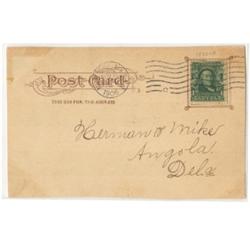 BLACK AMERICANA POSTCARD. Depicts two African-American youths. Titled "Chimney Sweeps". 1906 postmark.