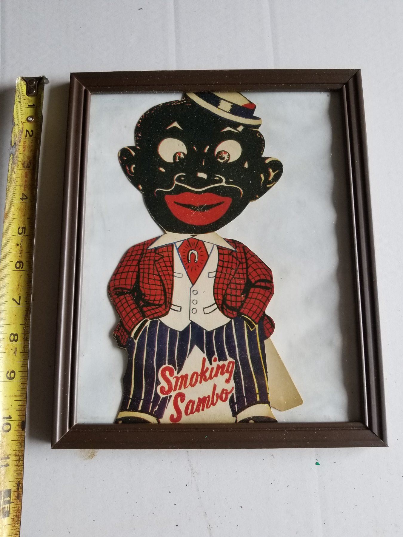 BLACK AMERICANA SMOKING DISPLAY ON CARDBOARD FOLD OUT STAND - FRAMED