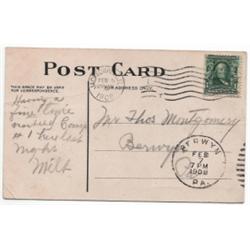 Black Americana postcard featuring black youth and alligator. Titled "A Fine Opening for a Southern Youth". 1908 postmark on reverse.