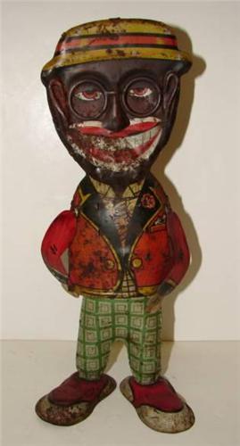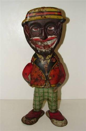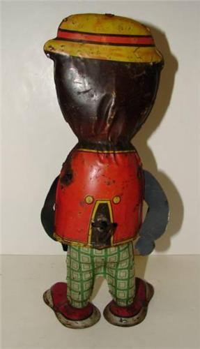 BLACK AMERICANA TIN LITHOGRAPH “ANDY” WALKER TOY. Poor, non-working condition with overall rust. 11” H.