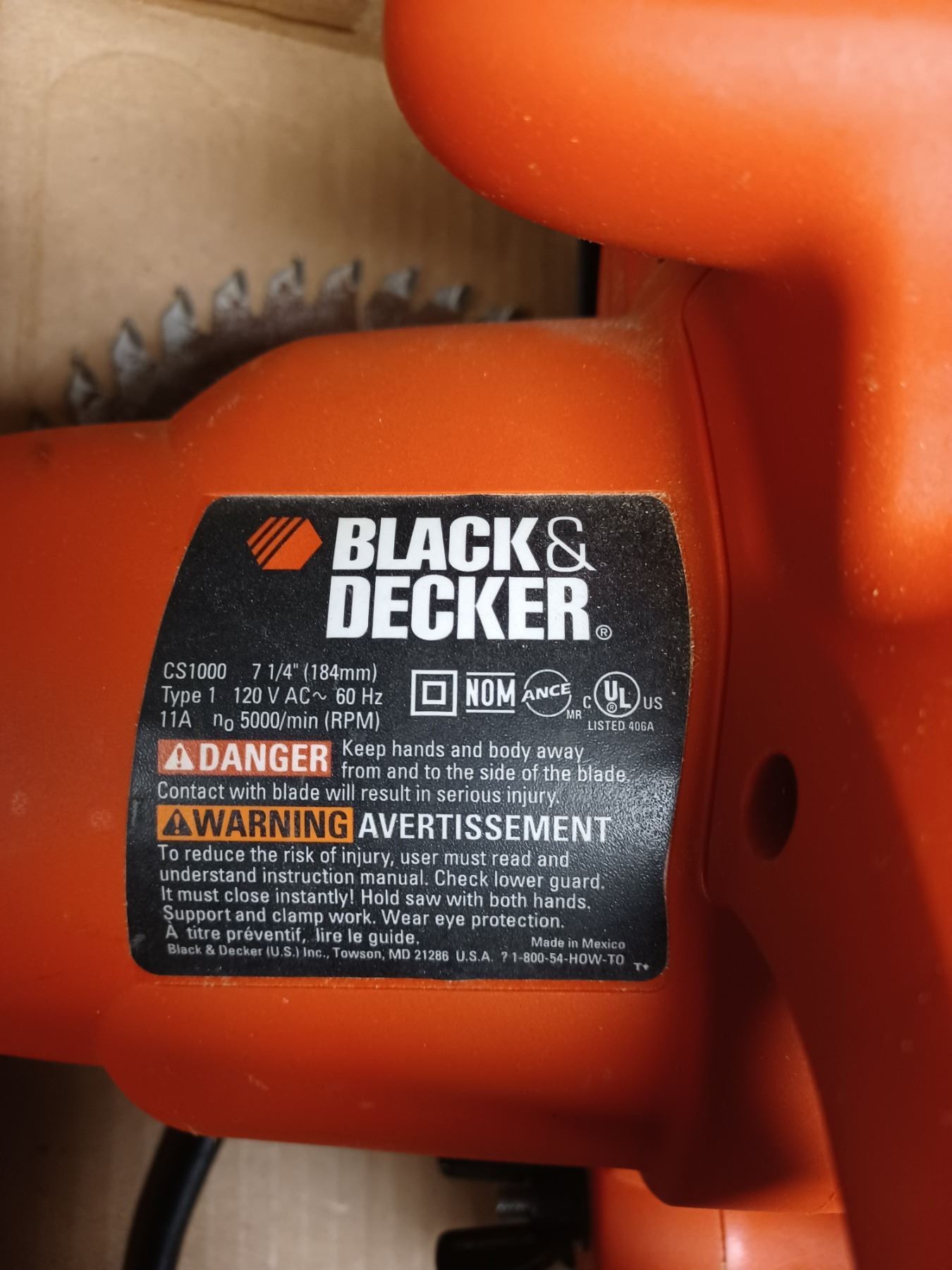 BLACK AND DECKER 7 1/4" CIRCULATING SAW WITH BLADE MODEL CS1000 11AMP
