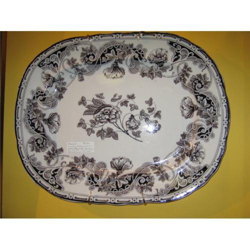 FINE RARE ENGLISH BLACK AND WHITE TRANSFERWARE LARGE ASHET WITH EXQUISITE FLORAL DECORATION. THE PLATTER IS NICELY MARKED TO THE UNDERNEATH WITH THE MARK OF CHARLES MEIGH & SON. IT WAS MADE CA 1851 AND IS IN VERY GOOD CONDITION.