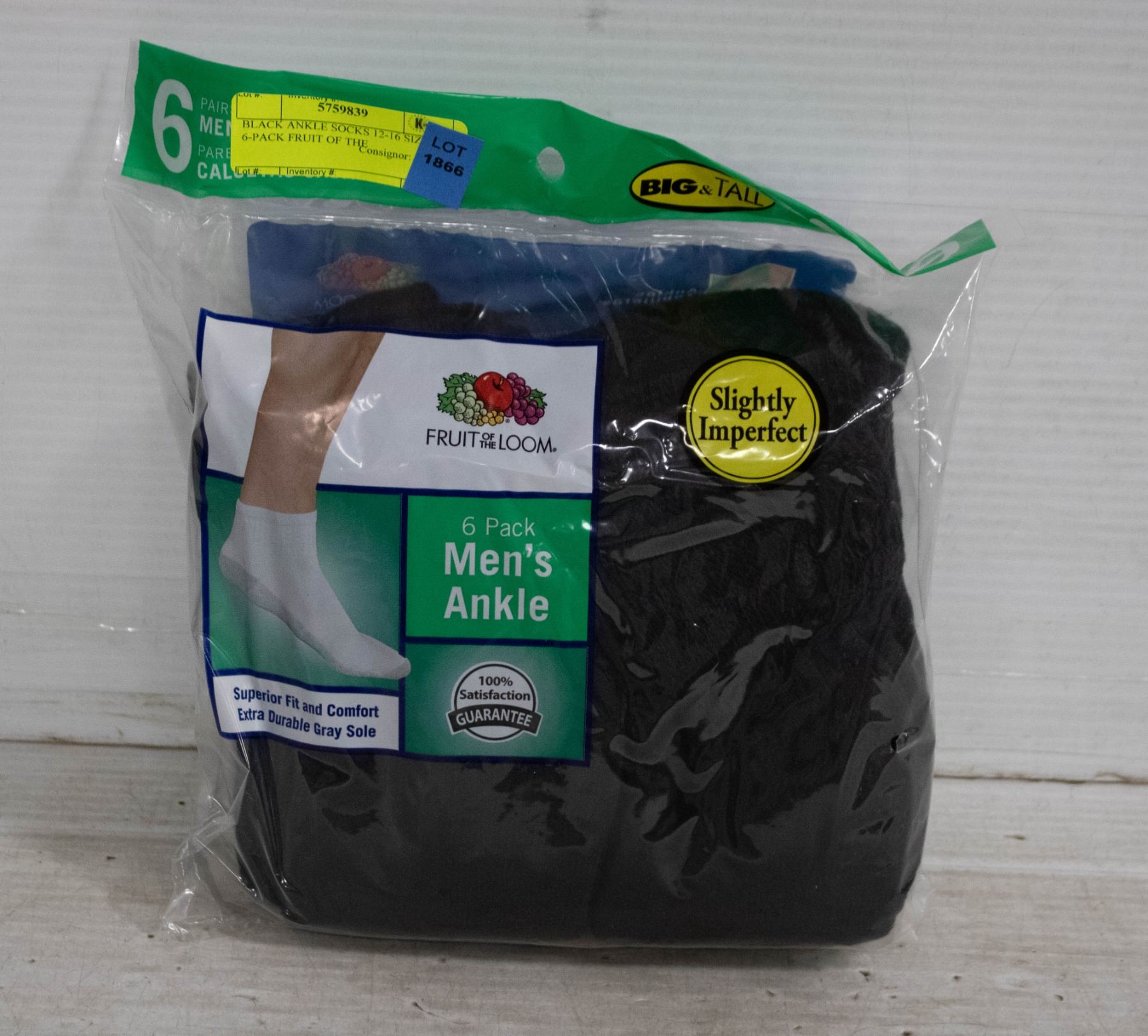 BLACK ANKLE SOCKS 12-16 SIZE 6-PACK FRUIT OF THE