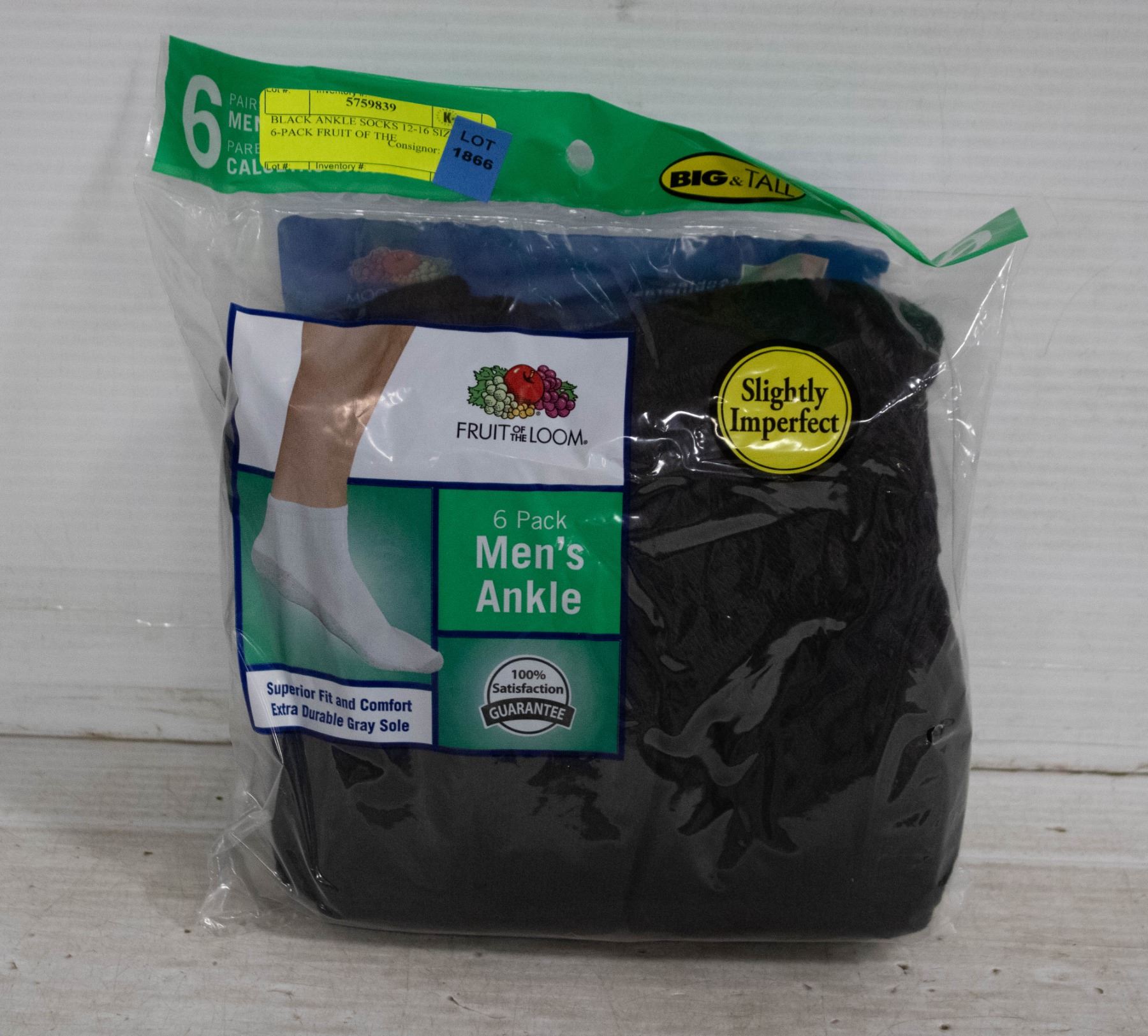 BLACK ANKLE SOCKS 12-16 SIZE 6-PACK FRUIT OF THE