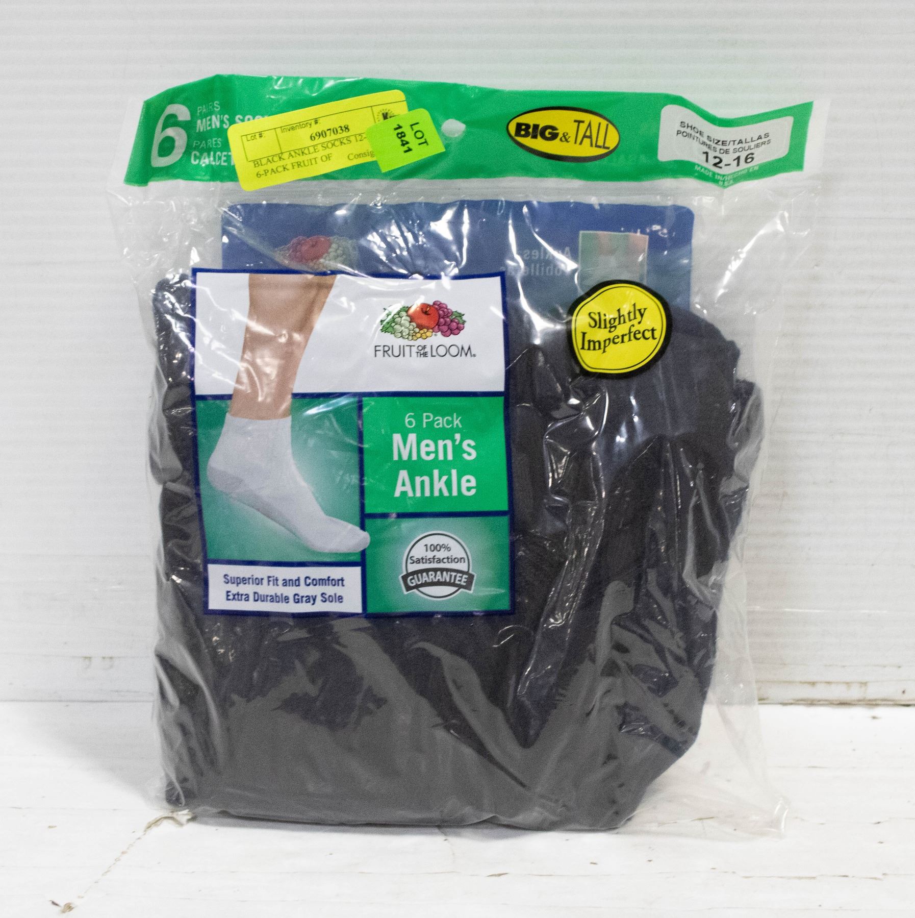 BLACK ANKLE SOCKS 12-16 SIZE 6-PACK FRUIT OF