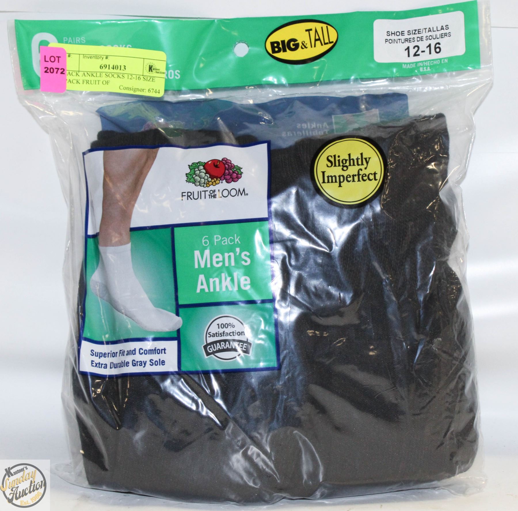 BLACK ANKLE SOCKS 12-16 SIZE 6-PACK FRUIT OF