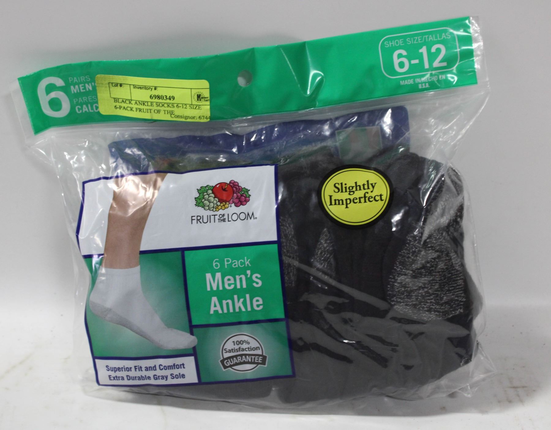BLACK ANKLE SOCKS 6-12 SIZE 6-PACK FRUIT OF THE
