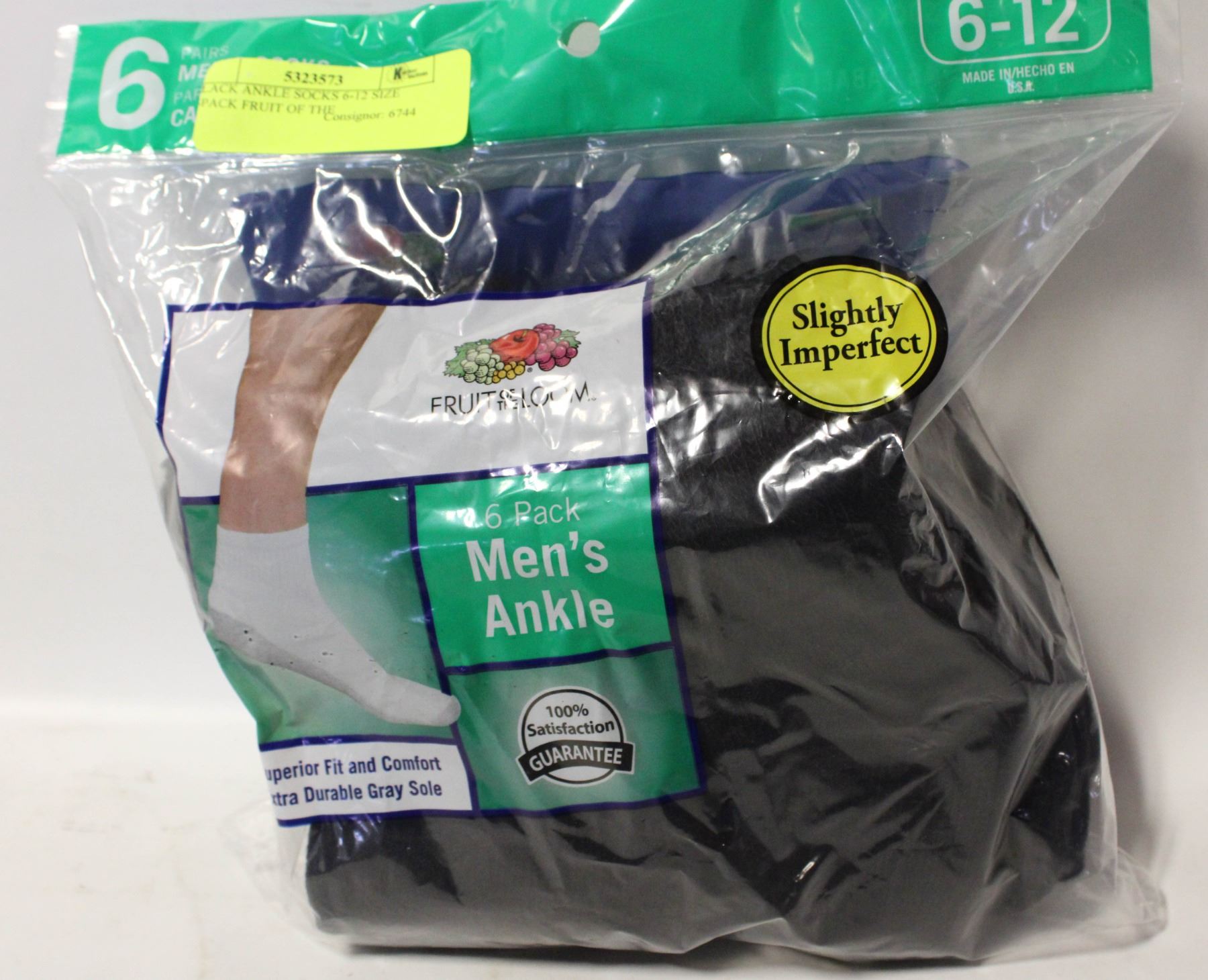 BLACK ANKLE SOCKS 6-12 SIZE 6-PACK FRUIT OF THE
