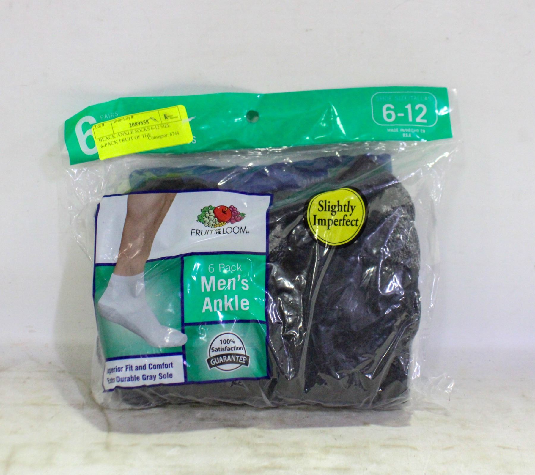 BLACK ANKLE SOCKS 6-12 SIZE 6-PACK FRUIT OF THE