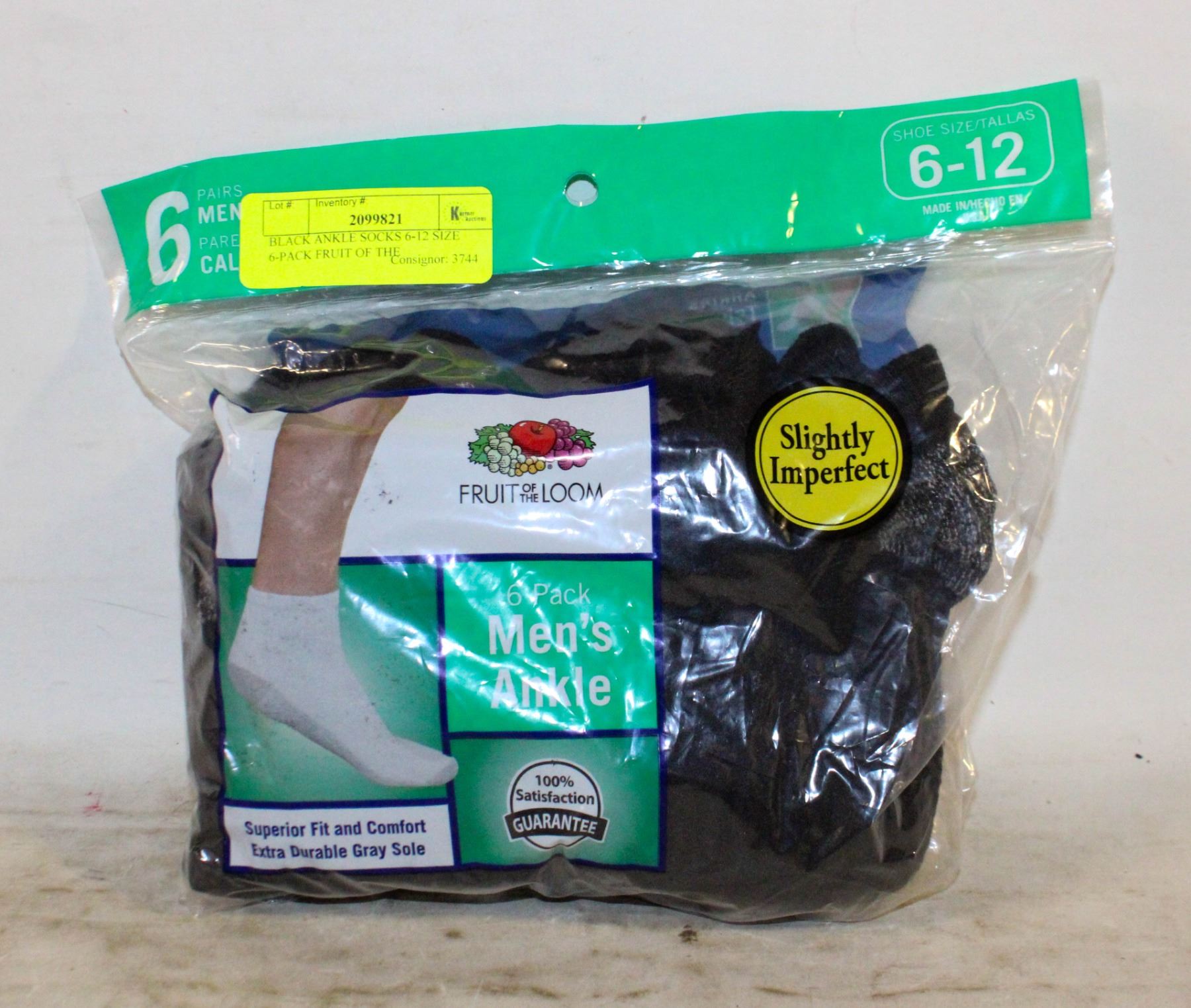 BLACK ANKLE SOCKS 6-12 SIZE 6-PACK FRUIT OF THE