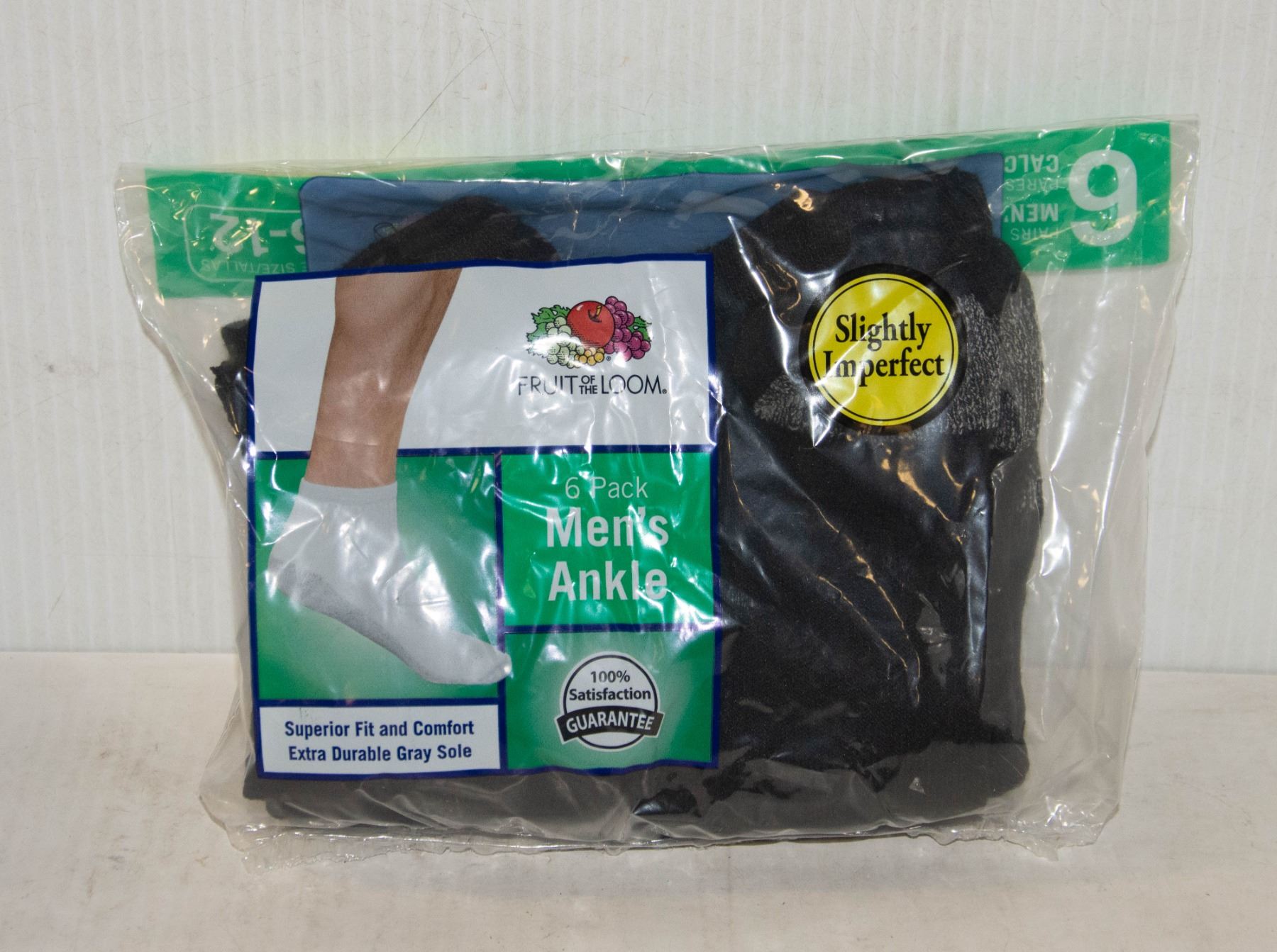 BLACK ANKLE SOCKS 6-12 SIZE 6-PACK FRUIT OF
