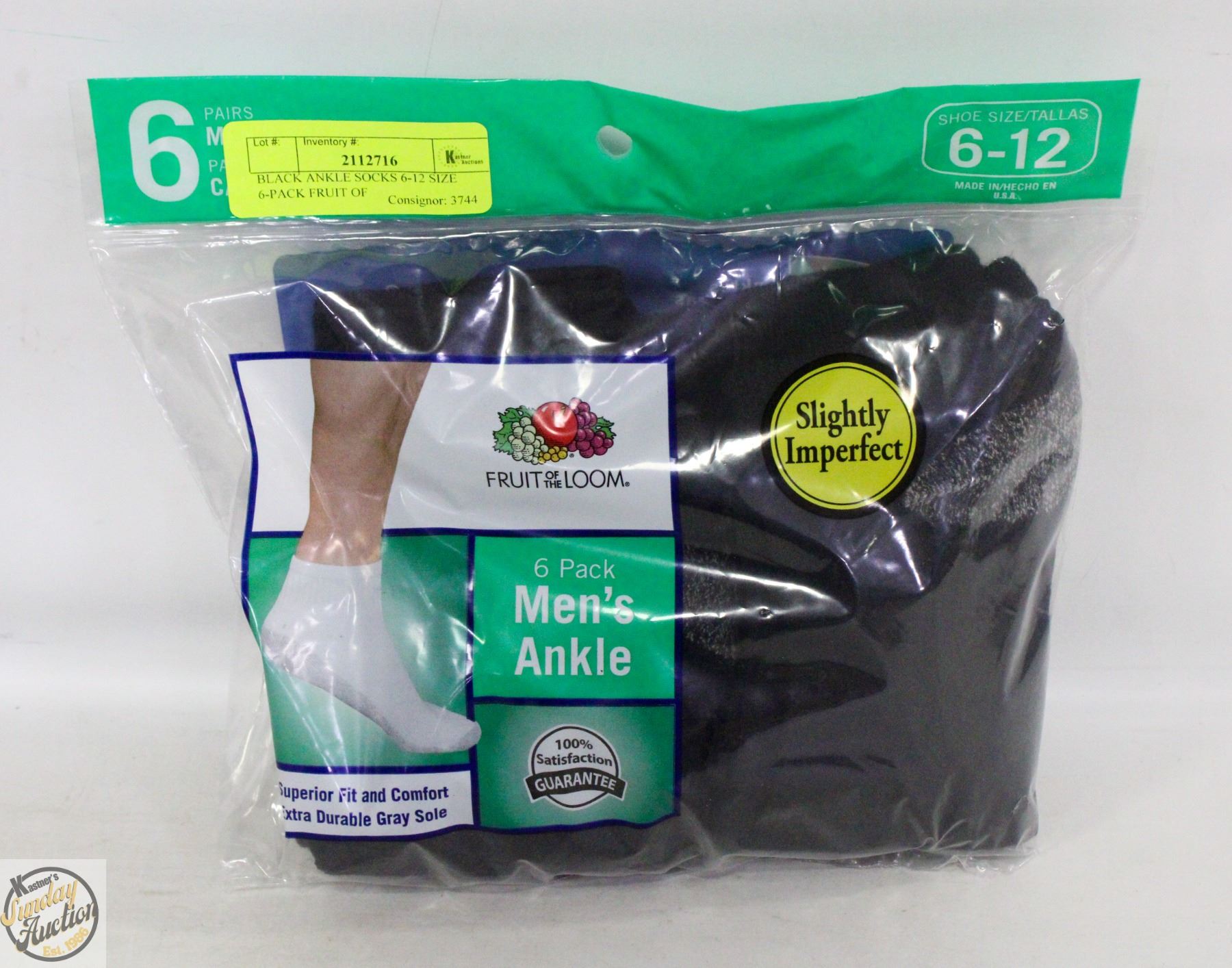 BLACK ANKLE SOCKS 6-12 SIZE 6-PACK FRUIT OF