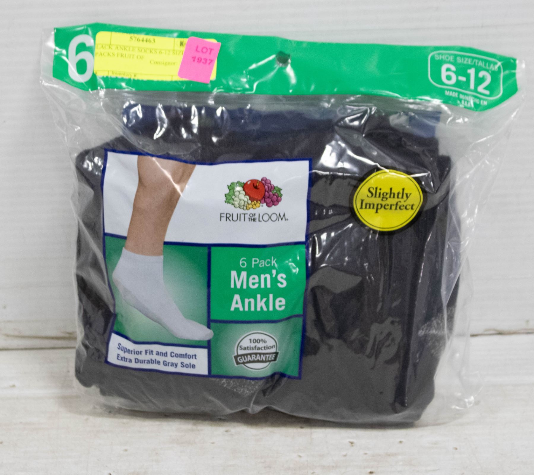 BLACK ANKLE SOCKS 6-12 SIZE 6-PACKS FRUIT OF