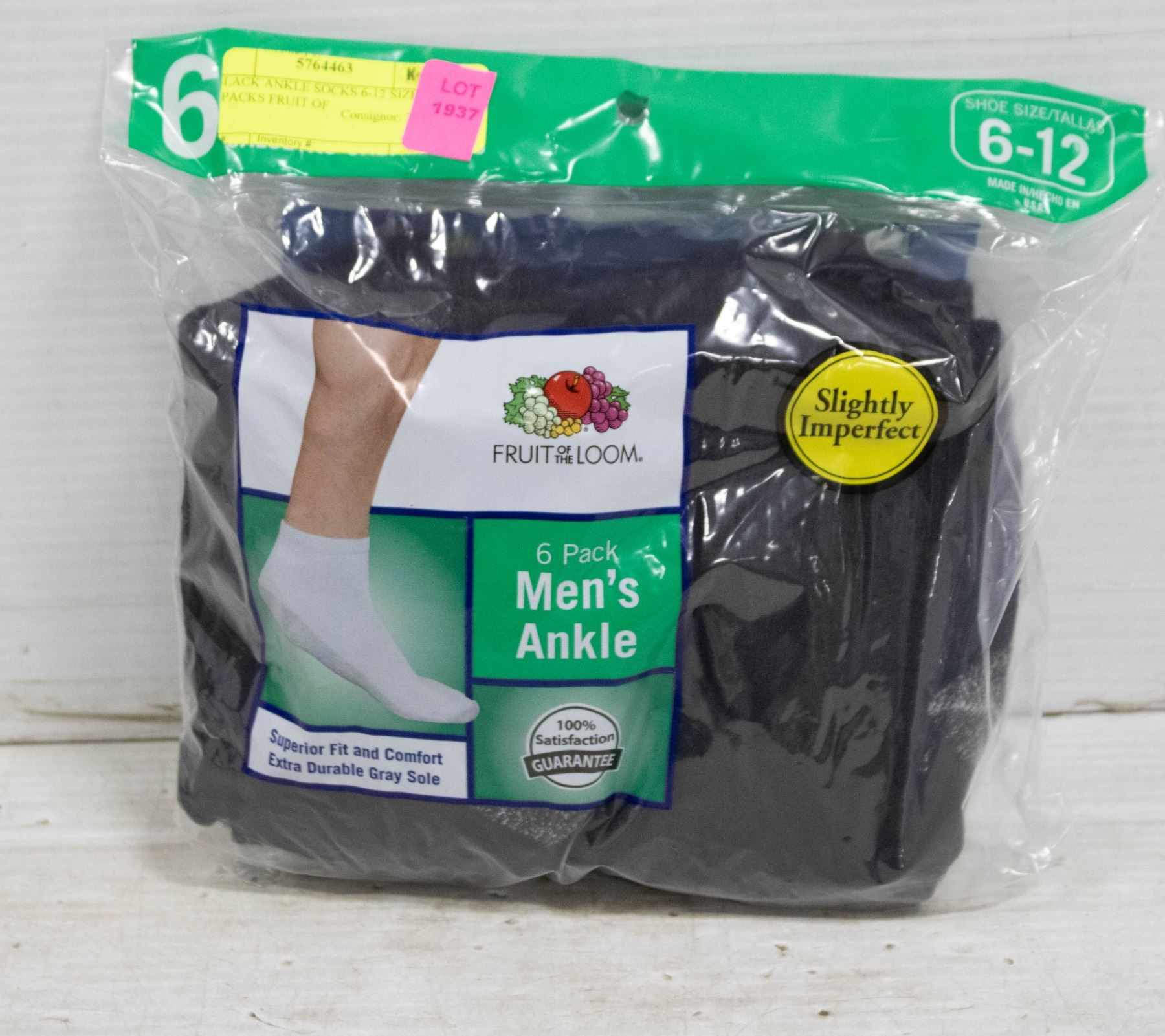 BLACK ANKLE SOCKS 6-12 SIZE 6-PACKS FRUIT OF