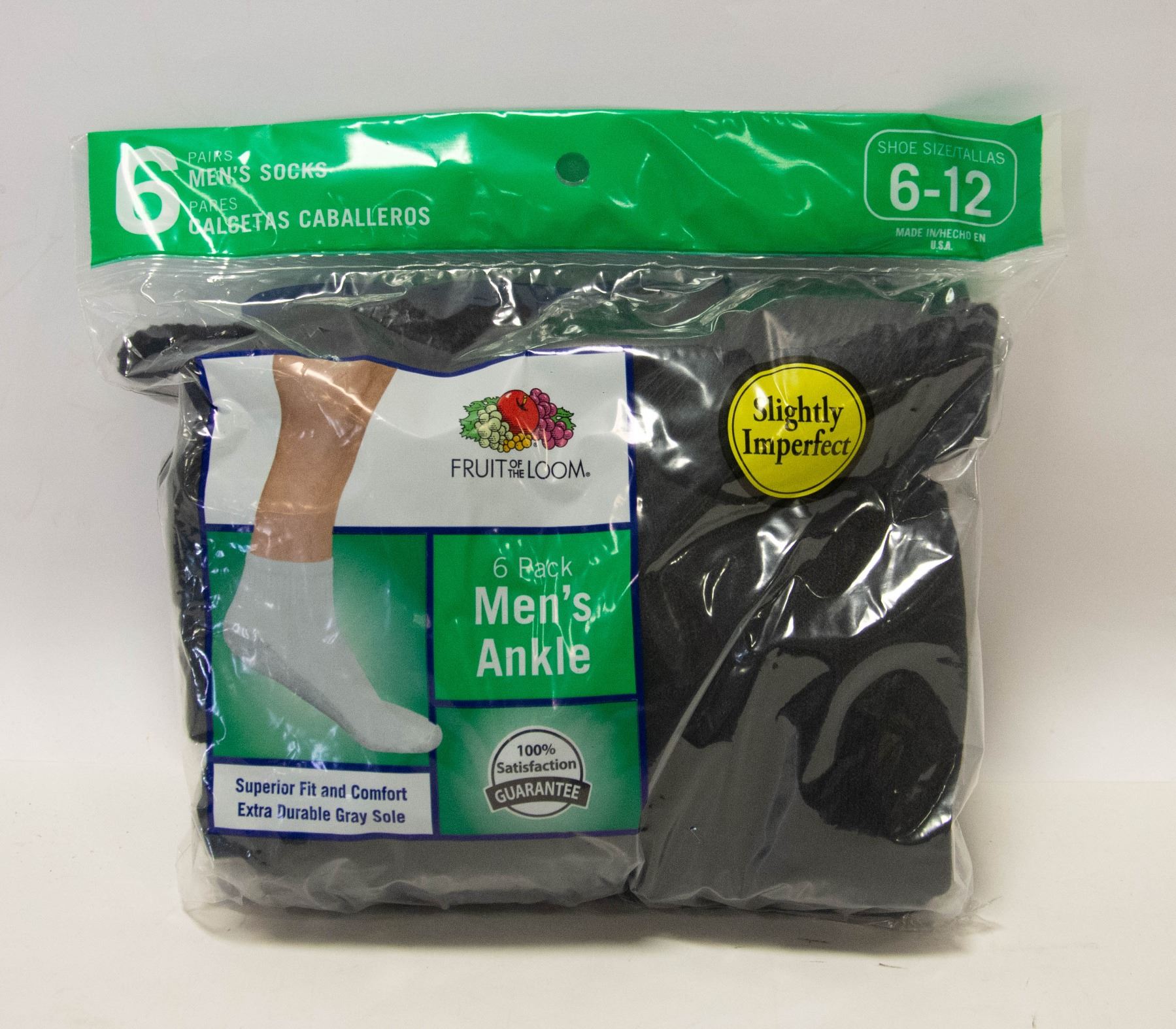 BLACK ANKLE SOCKS 6-12 SIZE 6-PACK