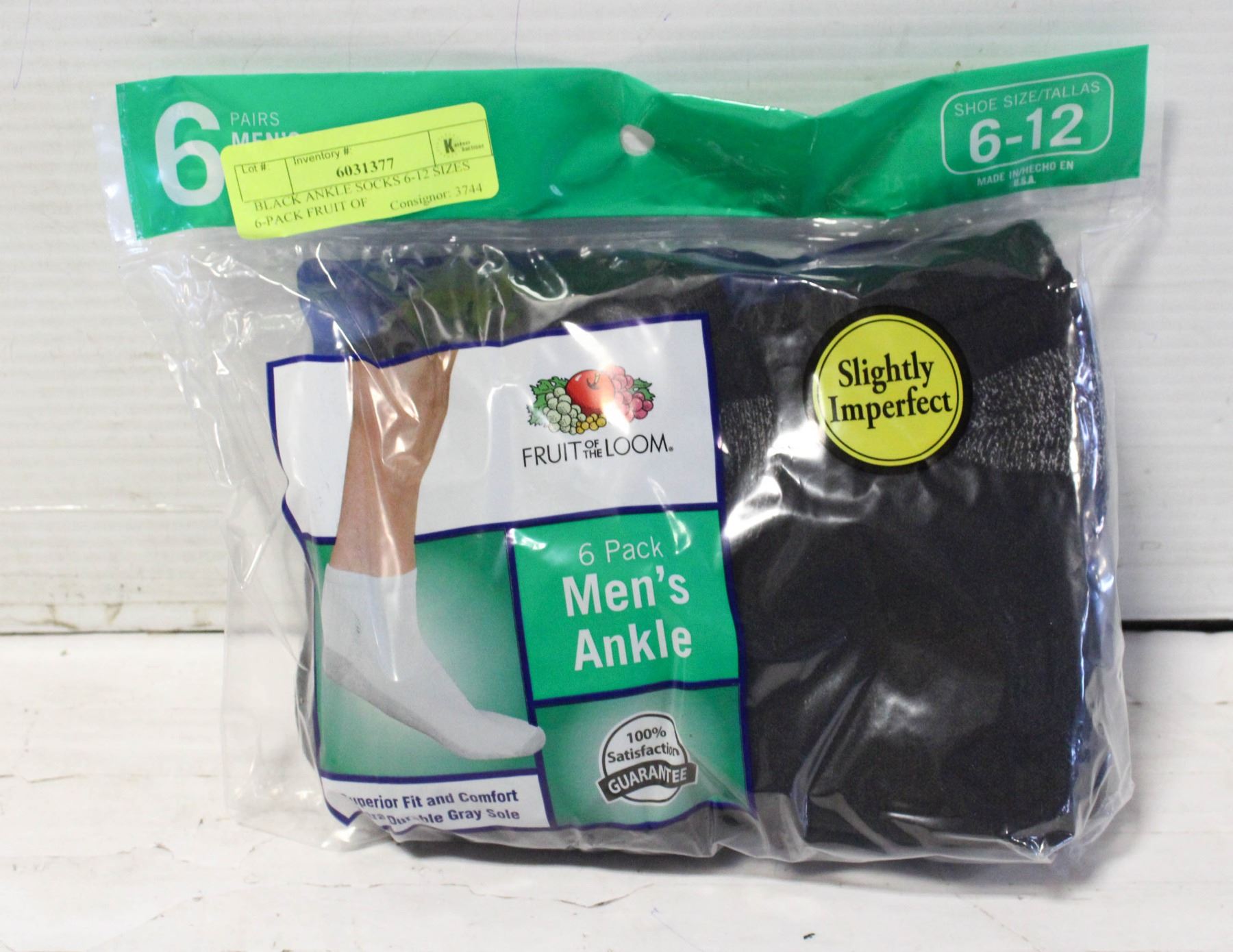 BLACK ANKLE SOCKS 6-12 SIZES 6-PACK FRUIT OF