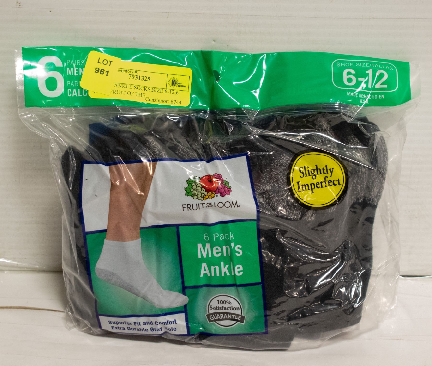 BLACK ANKLE SOCKS,SIZE 6-12,6 PACK,FRUIT OF THE