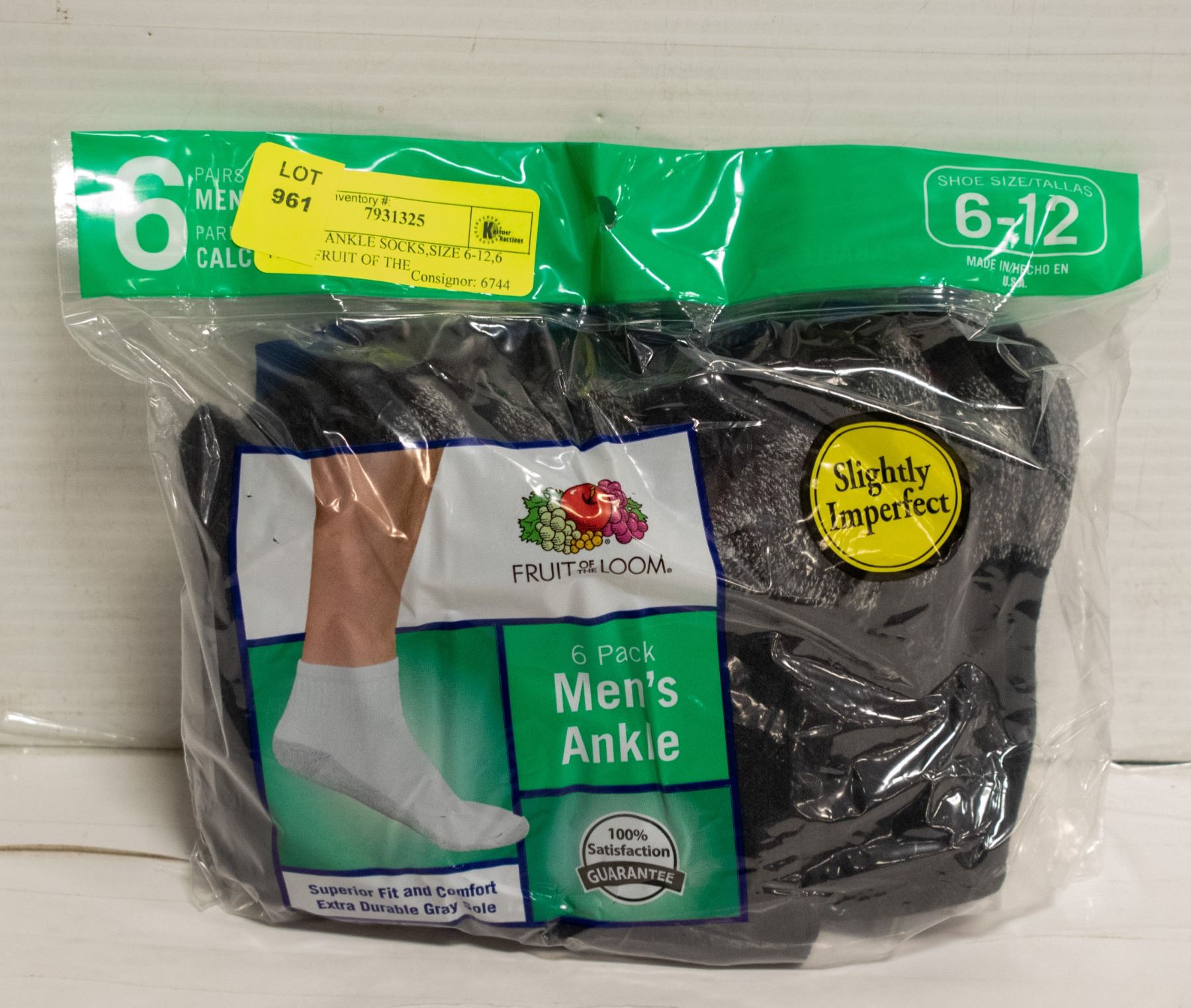 BLACK ANKLE SOCKS,SIZE 6-12,6 PACK,FRUIT OF THE