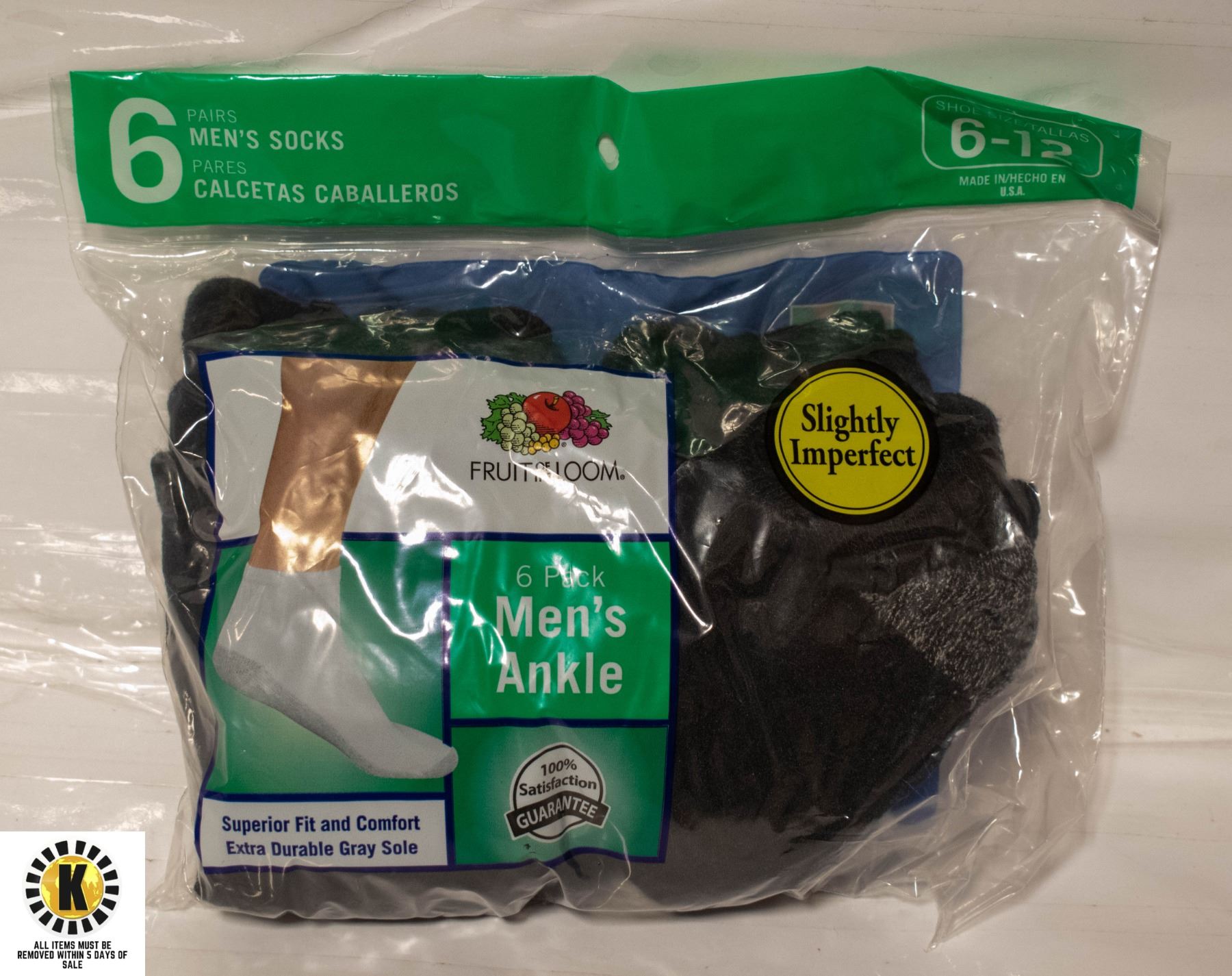 BLACK ANKLE SOCKS,SIZE 6-12,6-PACK,FRUIT OF THE