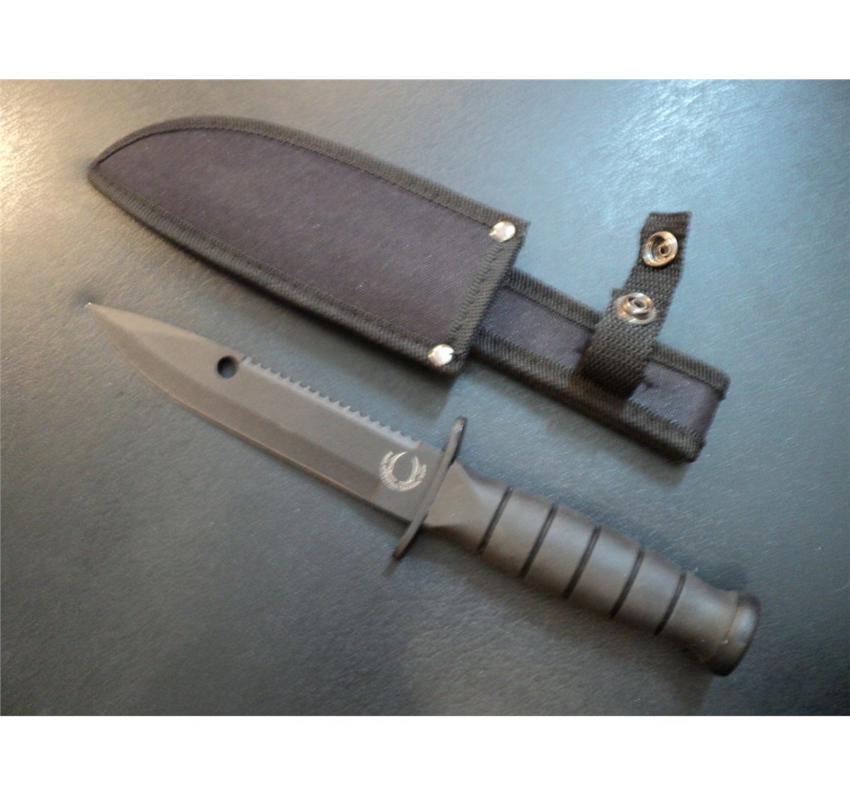 BLACK BLADE RUBBER HANDLE SURVIVAL KNIFE WITH SHEATH