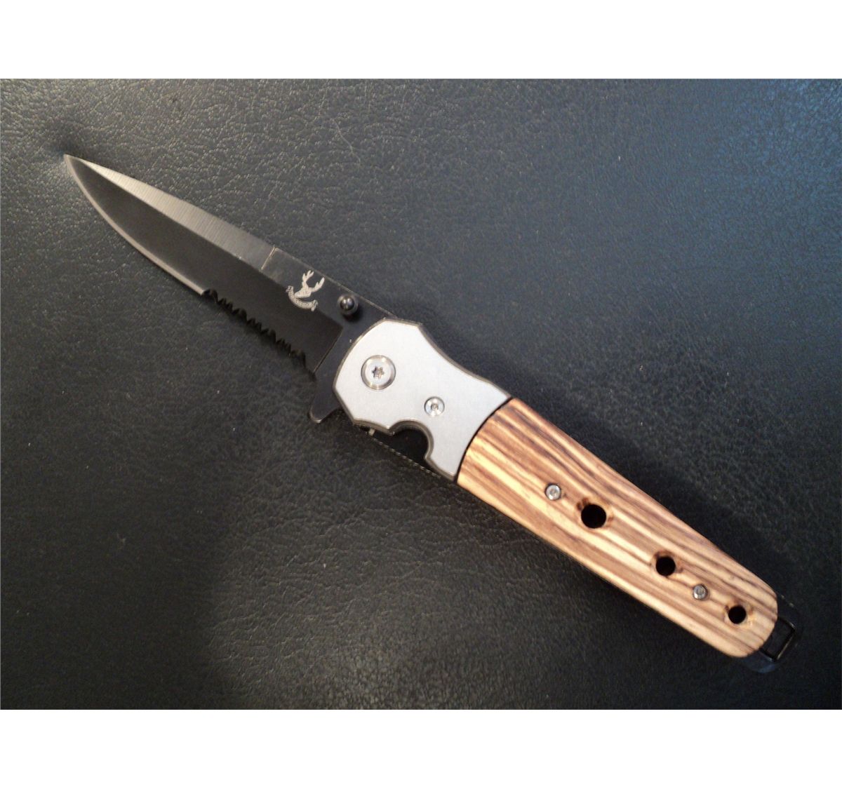 BLACK BLADE WOOD HANDLE STILETTO KNIFE