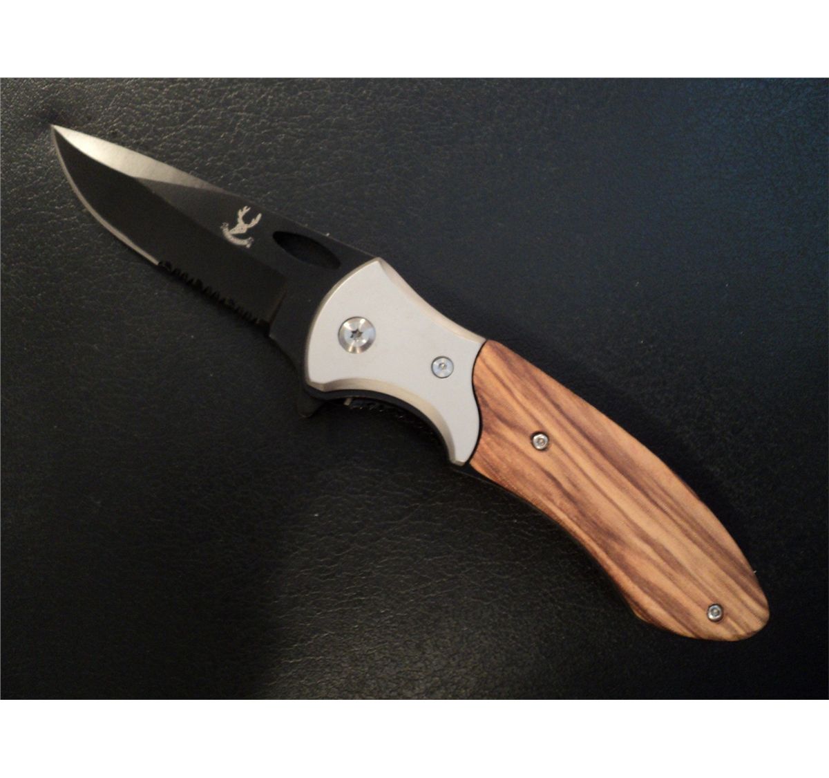 BLACK BLADE WOOD HANDLE STILETTO KNIFE