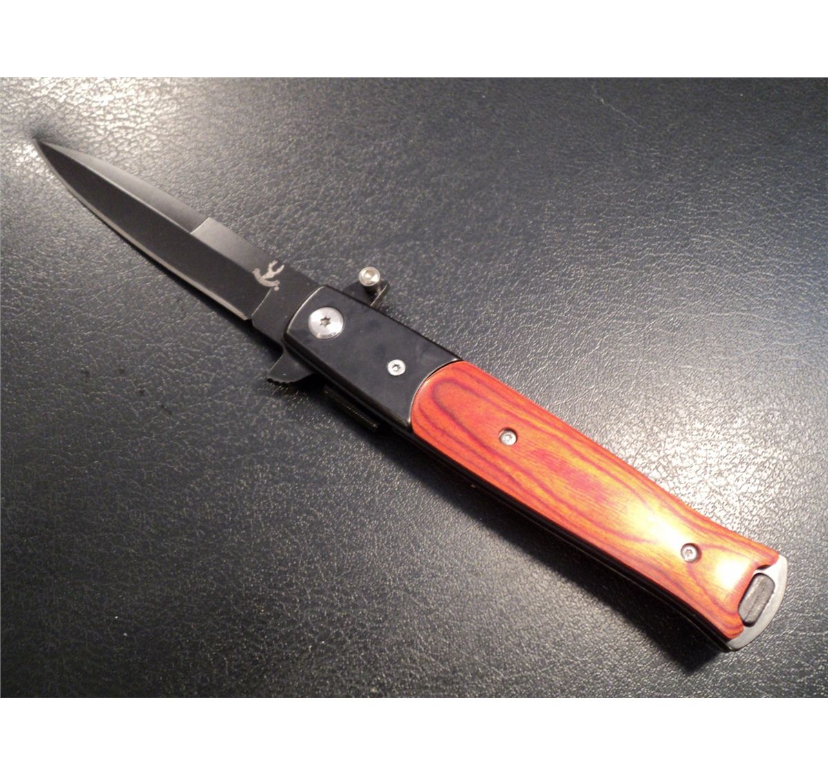 BLACK BLADE WOOD HANDLE STILETTO KNIFE